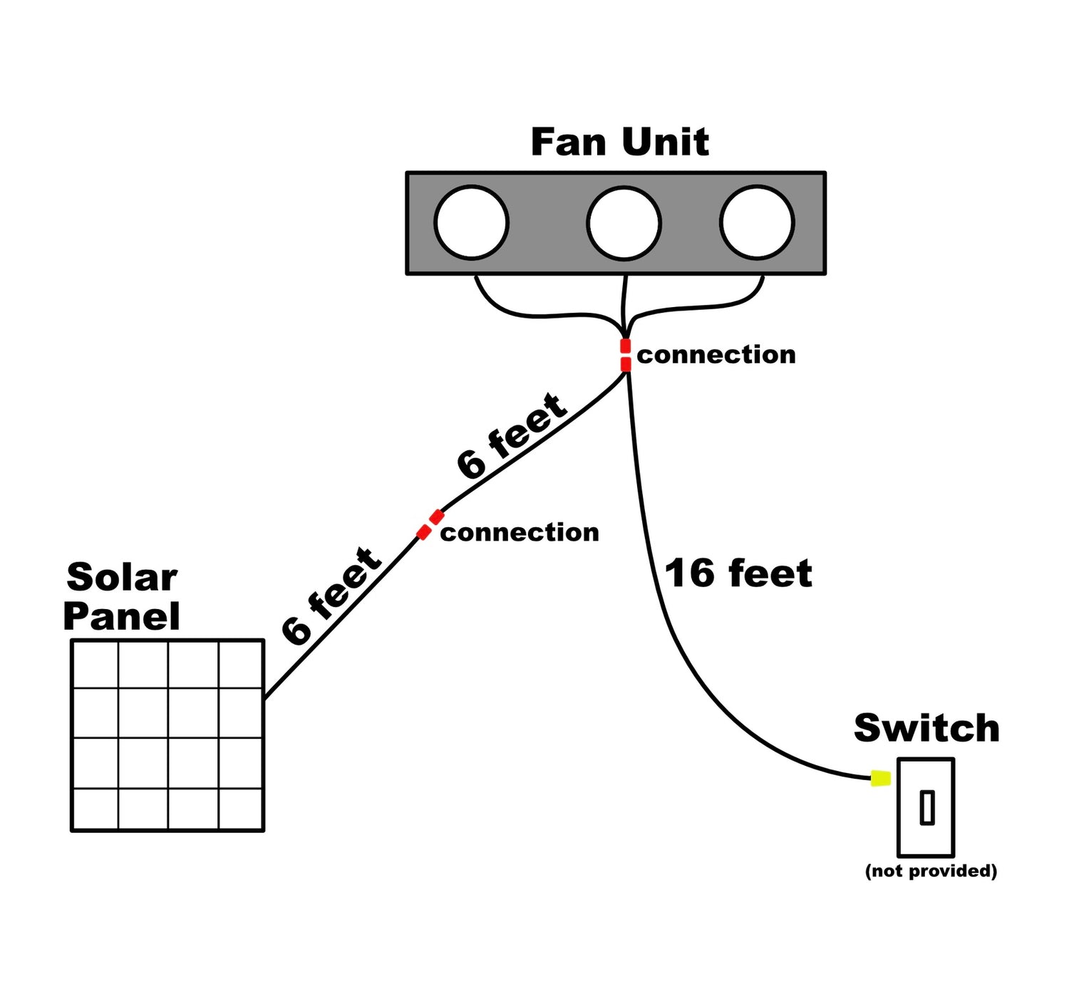 If your application of this product requires a longer cable than the one included, we are now offering a 16 foot extension cable that can be connected to a switch. This cable includes a 6ft long section that runs from the fan to the solar panel and a second 16ft long section that runs from the panel to a switch. Wire it to a switch of your choosing (not included). This accessory works alongside the Solar RidgeBlaster and Metal RidgeBlaster only.